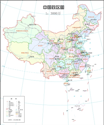 国内能用的英文版中国地图-分省设色 界线版 无邻国