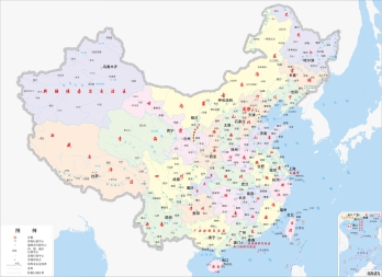 中国彩色地图矢量源文件_带省会和重要城市名称(AI/CDR/EPS)